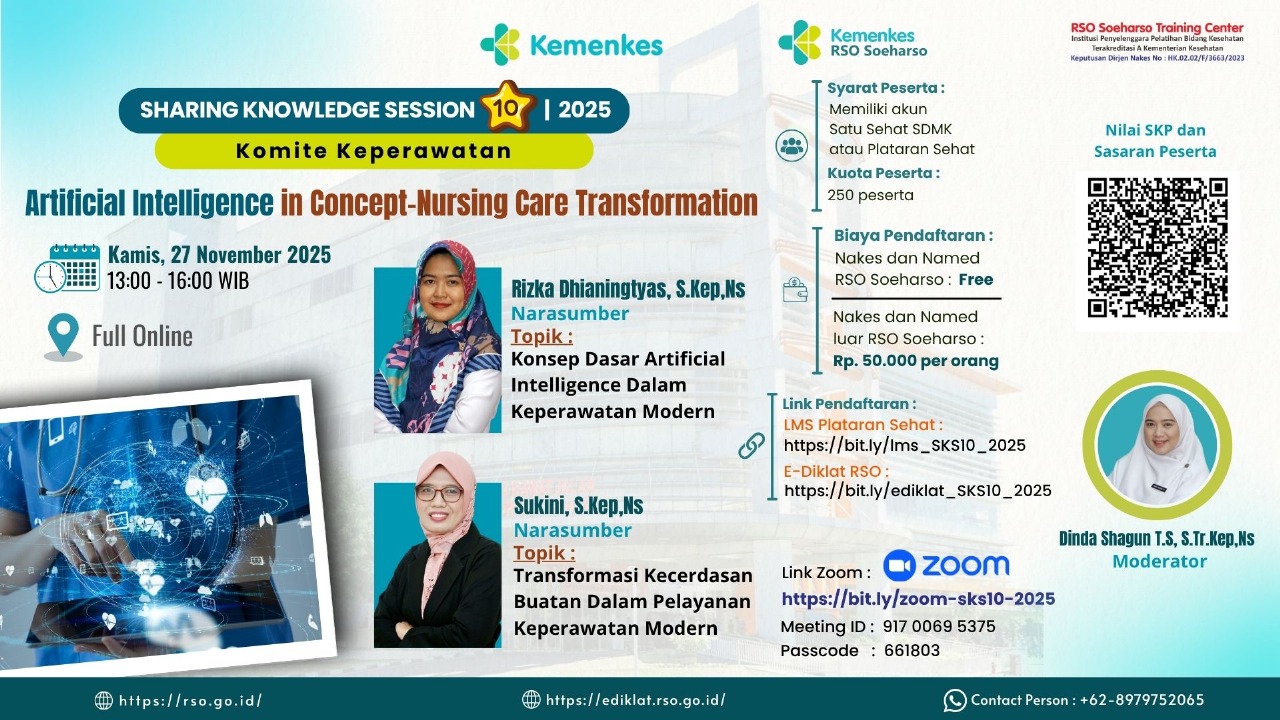 Perkembangan teknologi artificial intelligence (AI) telah membawa perubahan signifikan dalam berbagai bidang, termasuk keperawatan. AI dapat membantu meningkatkan kualitas pelayanan kesehatan dan keselamatan pasien dengan mengoptimalkan proses perawatan dan pengambilan keputusan. Namun, masih banyak tenaga kesehatan yang belum memahami secara mendalam tentang konsep dasar AI dalam keperawatan modern. Penggunaan AI dalam keperawatan dapat membantu meningkatkan efisiensi dan efektifitas perawatan pasien. AI dapat membantu dalam menganalisis data pasien, memprediksi risiko kesehatan, dan memberikan rekomendasi perawatan yang tepat. Oleh karena itu, perlu dilakukan edukasi dan sharing pengetahuan tentang konsep dasar AI dalam keperawatan modern dan transformasi kecerdasan buatan dalam pelayanan keperawatan. Dengan demikian, webinar nasional ini bertujuan untuk meningkatkan pengetahuan dan kesadaran tentang artificial intelligence dalam keperawatan modern. Webinar ini diharapkan dapat menjadi wadah bagi tenaga kesehatan untuk berbagi pengetahuan dan pengalaman dalam menggunakan AI dalam keperawatan.